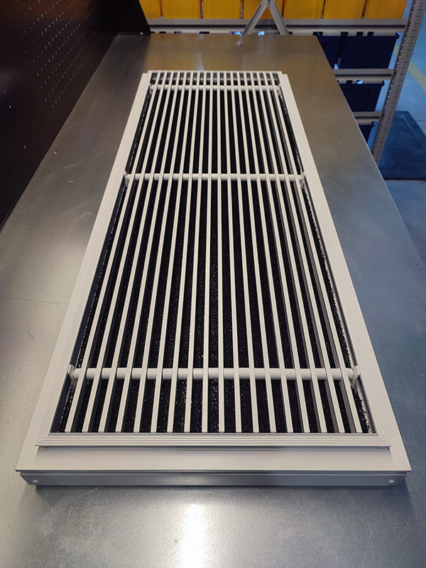 Используемые материалы. Щелевые решетки VLL-G и VLLS-G изготавливаются из экструдированного алюминиевого профиля АД31 по ГОСТ 22233-2018. По умолчанию корпус решетки окрашивается в стандартный белый цвет RAL 9016М матовый, а внутреннее исполнение в чёрный цвет RAL9005М матовый. По индивидуальному заказу возможна окраска в любой цвет по шкале RAL. Статическая камера изготавливается из оцинкованной листовой стали 0,4 - 1,5 мм в зависимости от размера и пожелания заказчика. По умолчанию все изделия поставляются в неокрашенном виде.