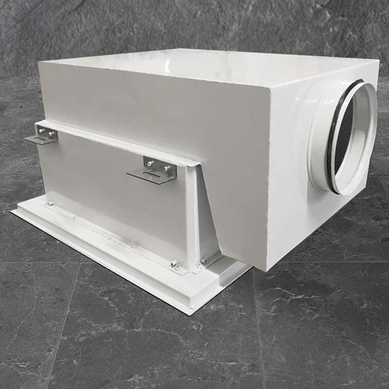 Заказать воздухораздающий блок для чистых помещений с круглым патрубком и боковым подводом.